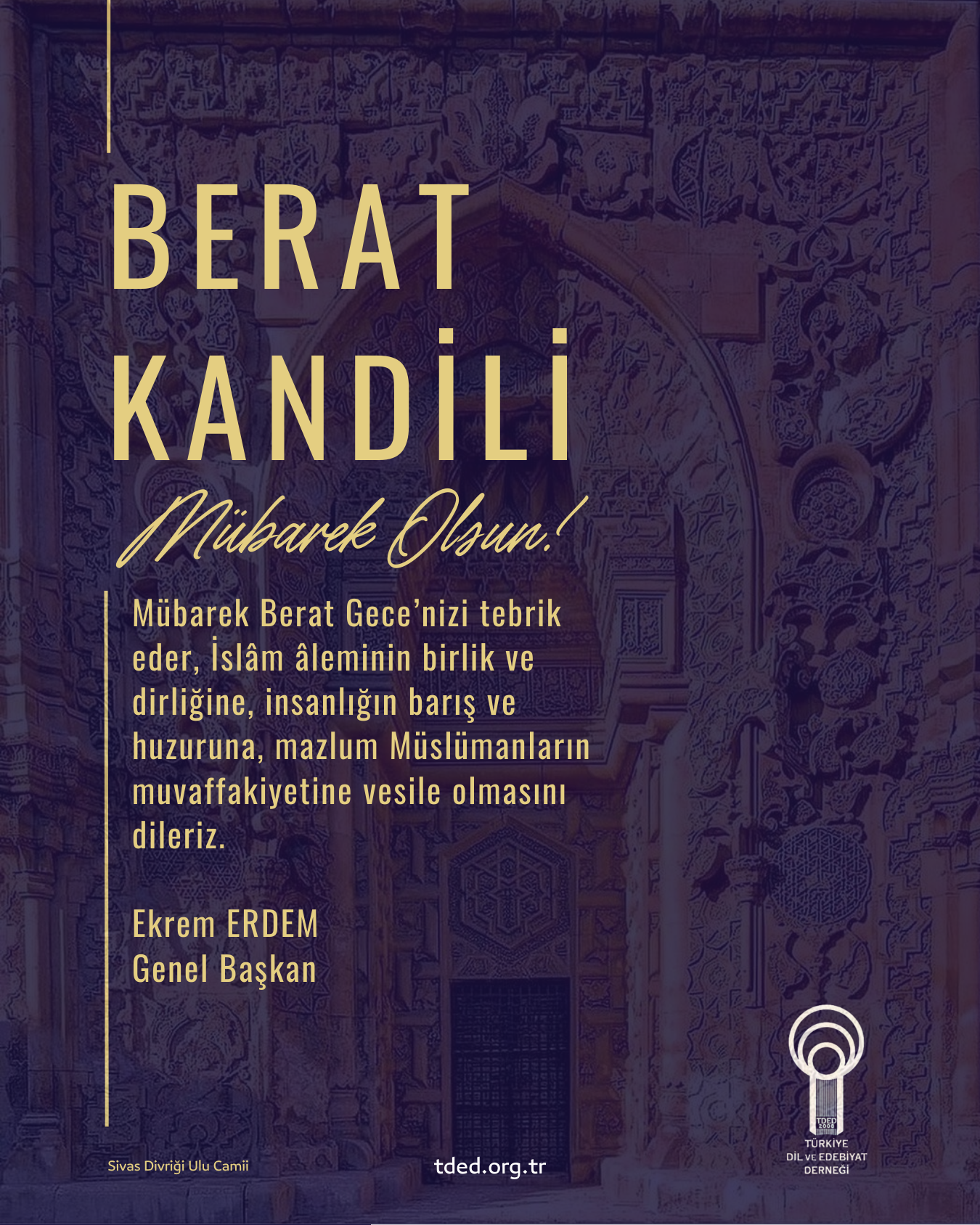 Anasayfa BERAT KANDİLİNİZİ TEBRİK EDERİZ BERAT KANDİLİNİZİ TEBRİK EDERİZ 02/02/2026 Mübarek Berat Gece’nizi tebrik eder, İslâm âleminin birlik ve dirliğine, insanlığın barış ve huzuruna, mazlum Müslümanların muvaffakiyetine vesile olmasını dileriz. Ekrem ERDEMGenel Başkan Galeri
