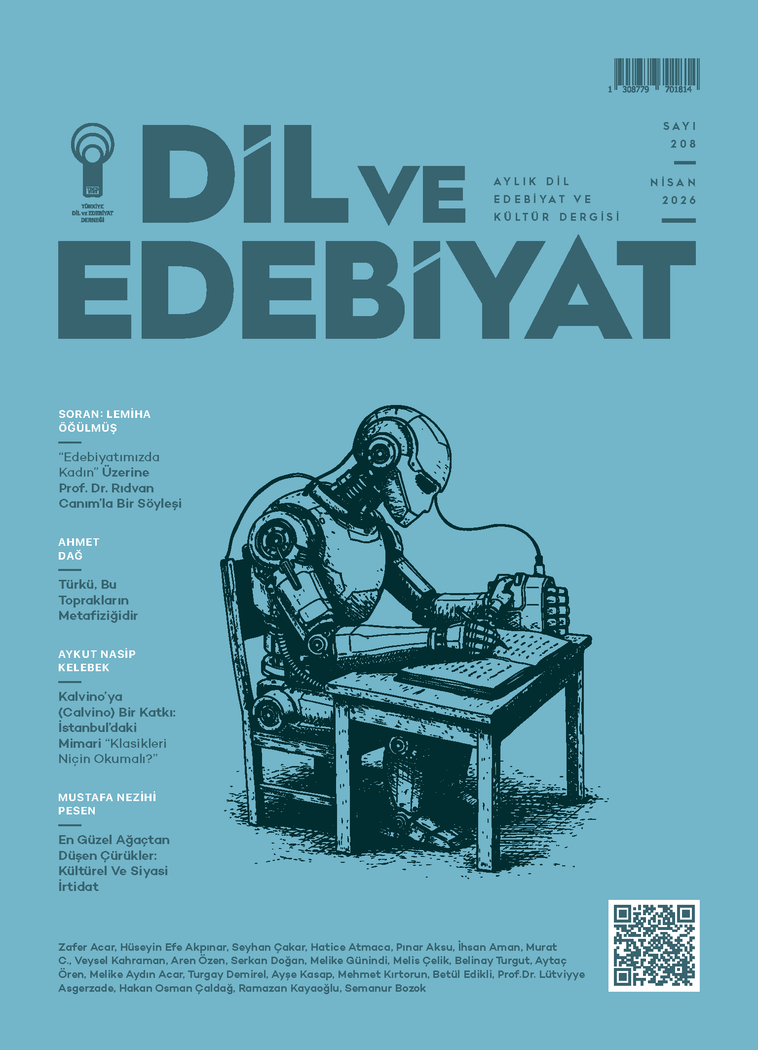Dil ve Edebiyat 208. (Mart 2026) sayısında, özgün şiirler, hikâyeler, denemeler, dil ve edebiyat üzerine makaleler, söyleşiler, sinema yazıları var.