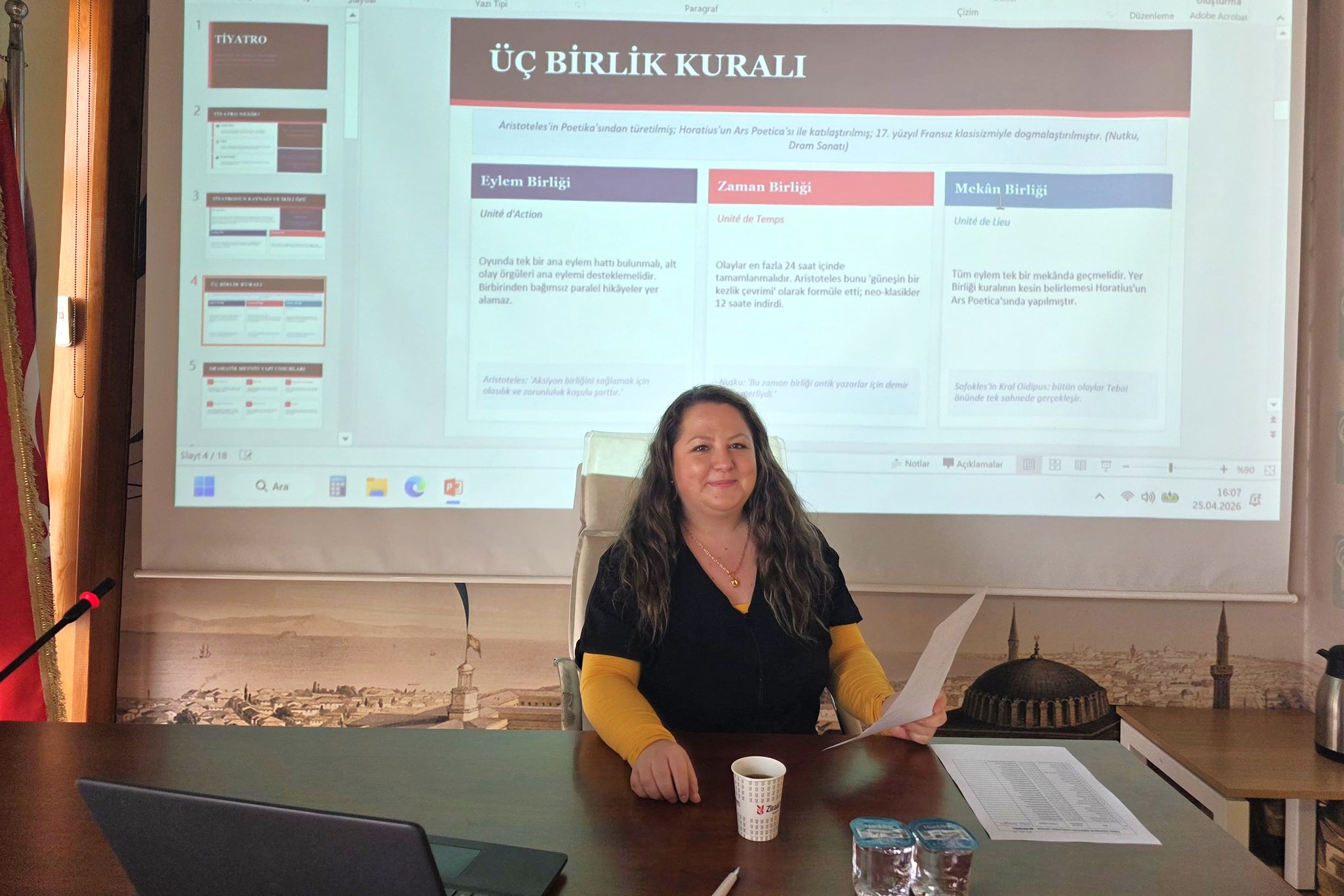 Derneğimizin İstanbul Üniversitesi iş birliğiyle hayata geçirdiği 2025 Dönemi “TDED Yazarlık Mektebi”ni başarıyla tamamlayan katılımcılar için Türkiye Dil ve Edebiyat Derneği (TDED) tarafından düzenlenen 2. Kademe Yazarlık Mektebi'nin 2. Grup eğitimlerinin 11. dersinde TDED Yönetim Kurulu Üyesi Dr. Öğr. Üyesi Filiz Ferhatoğlu, “Tiyatro Metninin Yapı Unsurları” konusunda tecrübelerini paylaştı. İkinci oturumda ise Necip Fazıl Kısakürek'in "Bir Adam Yaratmak" oyunu üzerinden uygulamalı olarak tiyatro metni çözümlemesi yapıldı.
