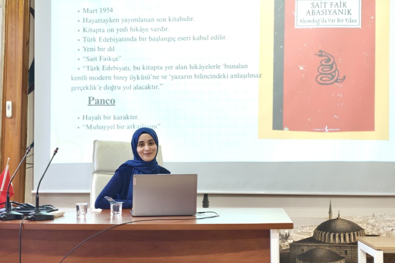 2024-2025 Dönemi “TDED Yazarlık Mektebi”ni başarıyla tamamlayan katılımcılar için Türkiye Dil ve Edebiyat Derneği (TDED) tarafından düzenlenen 2. Kademe Yazarlık Mektebi'nin 18. dersinde TDED Yönetim Kurulu Üyesi Doç. Dr. Aytaç Ören yönetiminde katılımcılardan Aybike Özaydın, Sait Faik’in “Alemdağ'da Var Bir Yılan” hikâyesini tahlil etti.