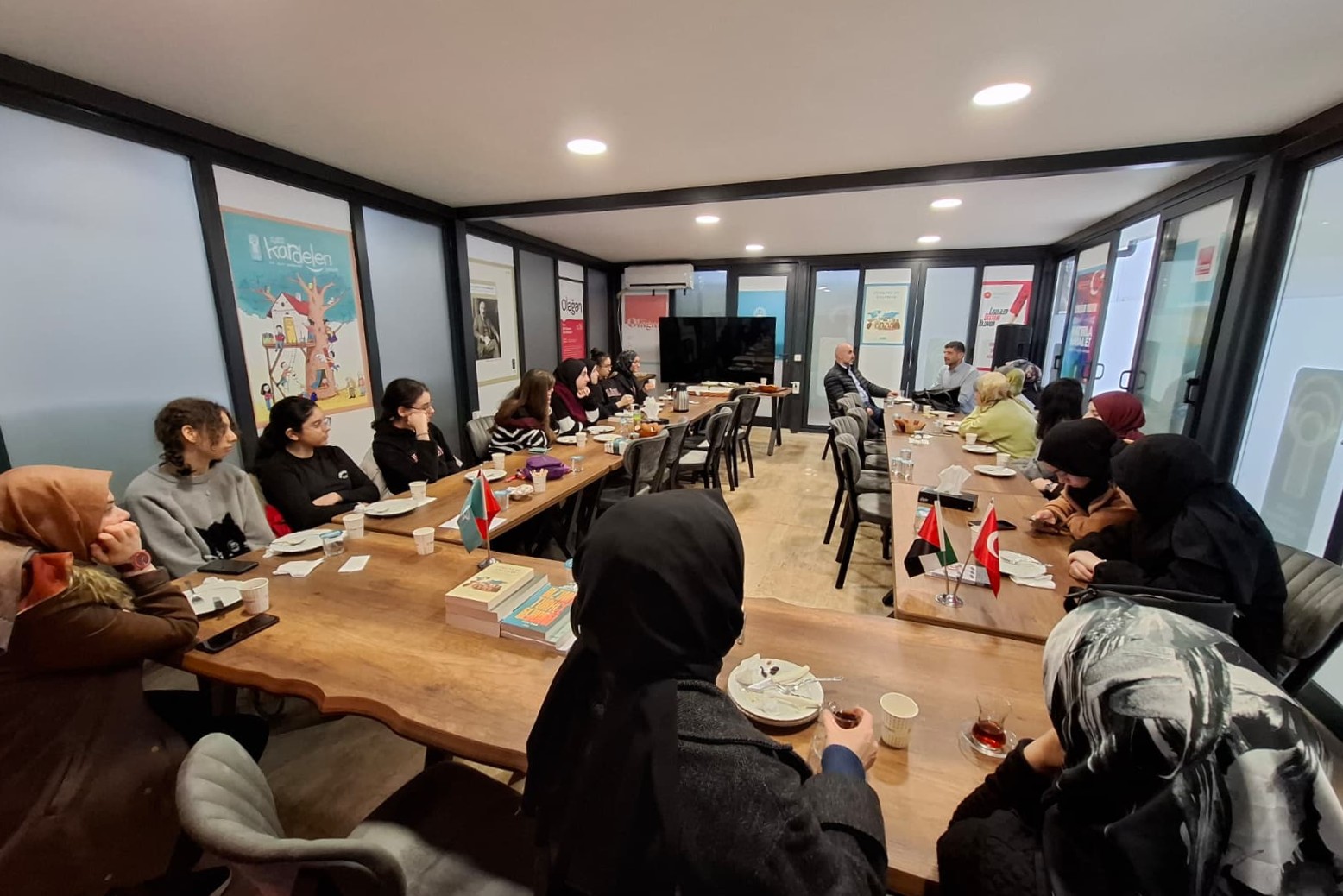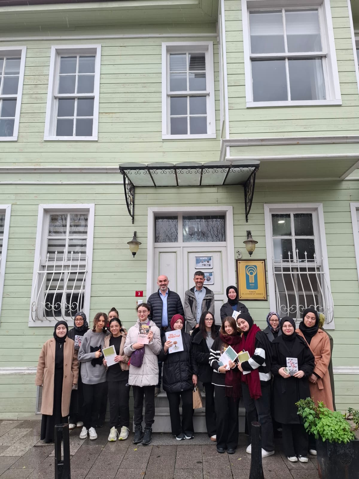Eyüpsultan Hasbahçe Kız Anadolu İmam Hatip Lisesi Medeniyet Okumaları öğrenci grubu ve rehber öğretmenleri, dernek genel merkezini ziyaret etti. Yönetim Kurulu Üyesi Doç. Dr. Aytaç Ören, misafirlere dernek faaliyetlerini ve yayınlarını anlatarak derneğin dil hassasiyetine dair bilgilendirmede bulundu. Genel Merkez’deki söyleşinin ardından program kapsamında, Doç. Dr. Aytaç Ören rehberliğinde Şule Yüksel Vakfı ziyaret edildi ve Türkiye Milli Kültür Vakfı Gelenekli Sanatlar Müzesi gezildi.