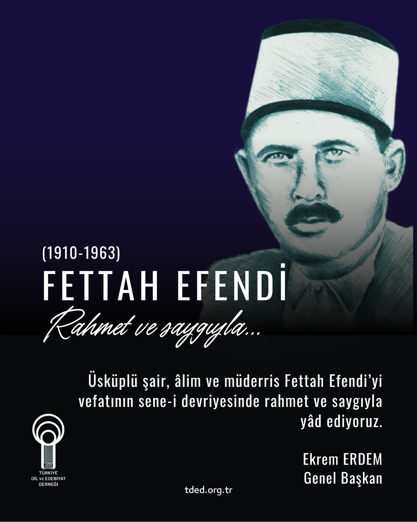 Üsküplü şair, âlim ve müderris Fettah Efendi’yi vefatının 58’inci yılında rahmet ve saygıyla yâd ediyoruz.