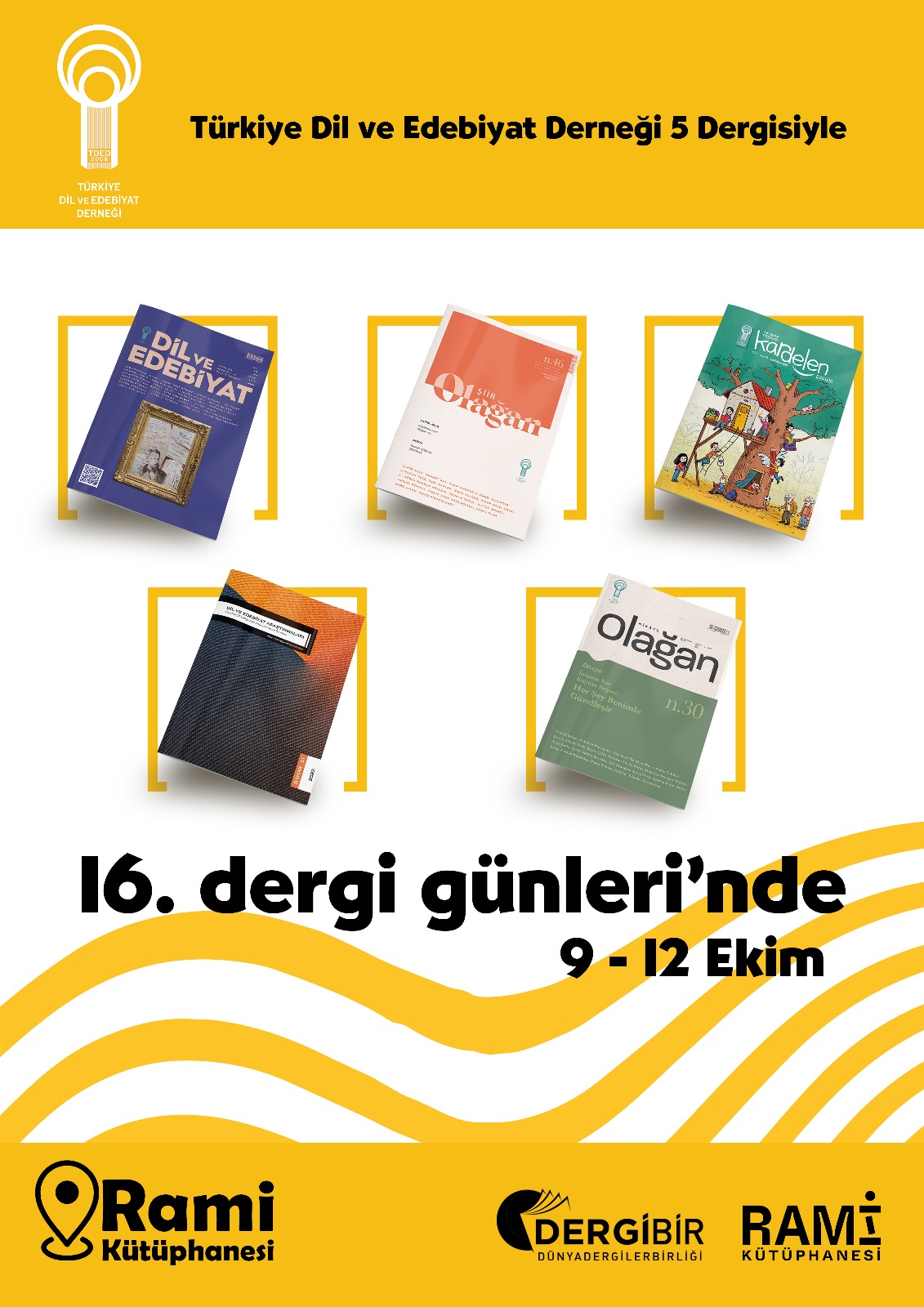 Türkiye Dil ve Edebiyat Derneği (TDED), Dil ve Edebiyat, Dil ve Edebiyat Araştırmaları (Hakemli), Olağan Şiir, Olağan Hikâye, Kardelen Çocuk dergileriyle bu yıl Rami Kütüphanesi’nde düzenlenen 16. Dergi Günleri'nde okurla buluşacak. Derneğin muhtelif kitap yayınları da dergilere eşlik edecek.