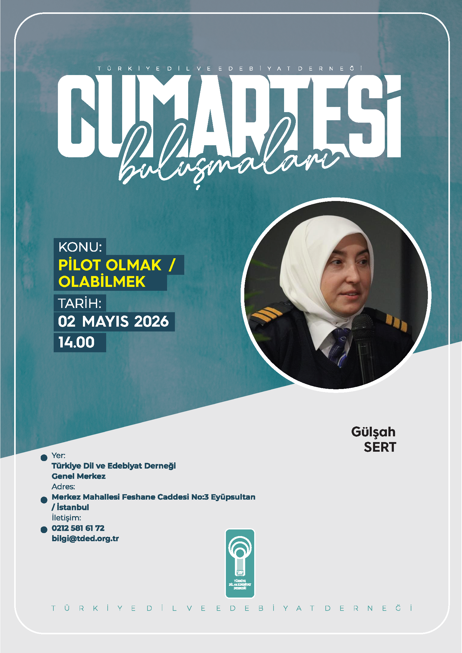 Mayıs ayının ilk konuşmacısı pilot öğretmeni Gülşah Sert, “Pilot Olmak / Olabilmek” başlıklı bir konuşma yapacak.