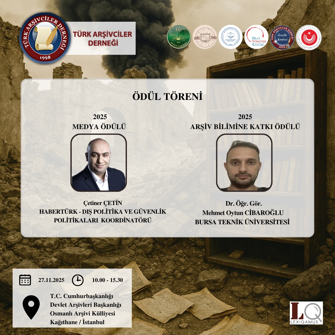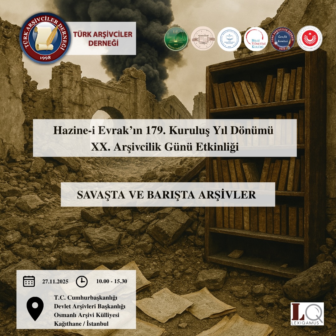 Türk Arşivciler Derneği, Hazine-i Evrak’ın 179. kuruluş yıl dönümü ve 20. Arşivcilik Günü kapsamında düzenlenen “Savaşta ve Barışta Arşivler” temalı etkinlikte, Türkiye Dil ve Edebiyat Derneği Genel Başkanı Ekrem Erdem davetli konuşmacı olarak yer alacak.