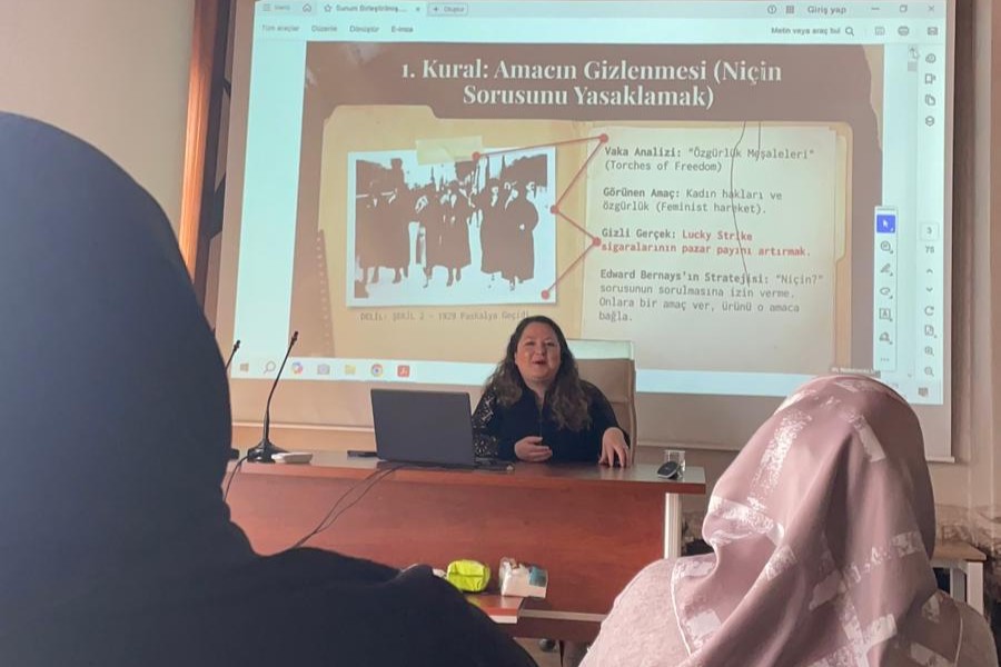 Proje Koordinatörü Emine Bayburt öncülüğünde gerçekleştirilen programda, bu hafta TDED Yönetim Kurulu Üyesi Dr. Öğr. Üyesi Filiz Ferhatoğlu ile “Algı ve Manipülasyon” kitabı tahlil edildi. Dilin, yalnızca bir iletişim aracı değil, düşüncenin, yönlendirmenin ve anlam inşasının temeli olduğu, algıyı şekillendirdiği, dilsel ve psikolojik araçlarla manipülasyon aracı hâline getirildiği konularının ele alındığı verimli buluşmada; kelimelerin bireysel ve toplumsal düzlemdeki etkisi çok boyutlu olarak değerlendirildi.