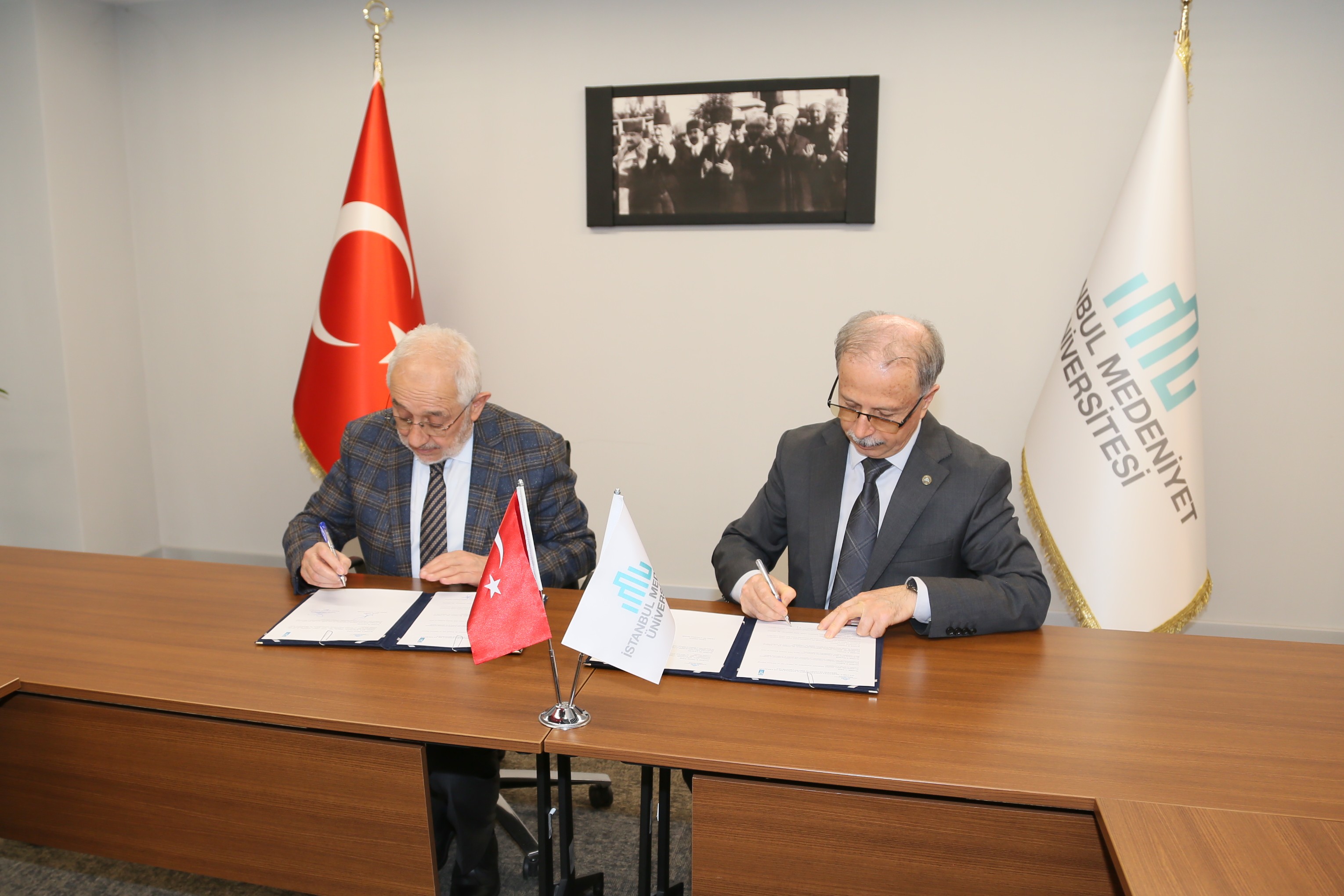TDED Genel Başkanı Ekrem Erdem ve İstanbul Medeniyet Üniversitesi Rektörü Gülfettin Çelik'in imza attığı törende TDED Genel Başkan Yardımcıları Atilla Kırali ve İrfan Çalışan, Genel Sekreteri Cemal Özdemir ile Üniversite Rektör Yardımcısı Fatih Sarıoğlu ve Edebiyat Fakültesi Dekanı TDED Yüksek İstişare Kurulu Üyesi Prof. Dr. Ahmet Koçak hazır bulundu.