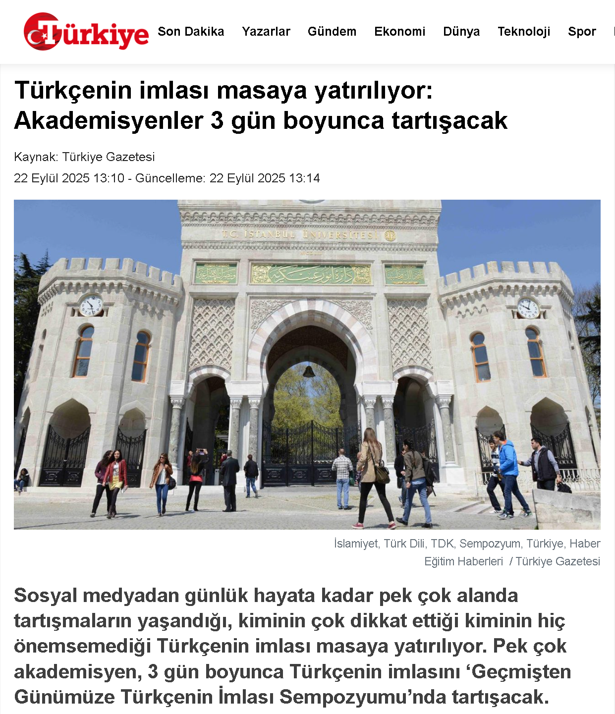 Kaynak: Türkiye Gazetesi / https://www.turkiyegazetesi.com.tr/egitim/turkcenin-imlasi-masaya-yatiriliyor-akademisyenler-3-gun-boyunca-tartisacak-1147726