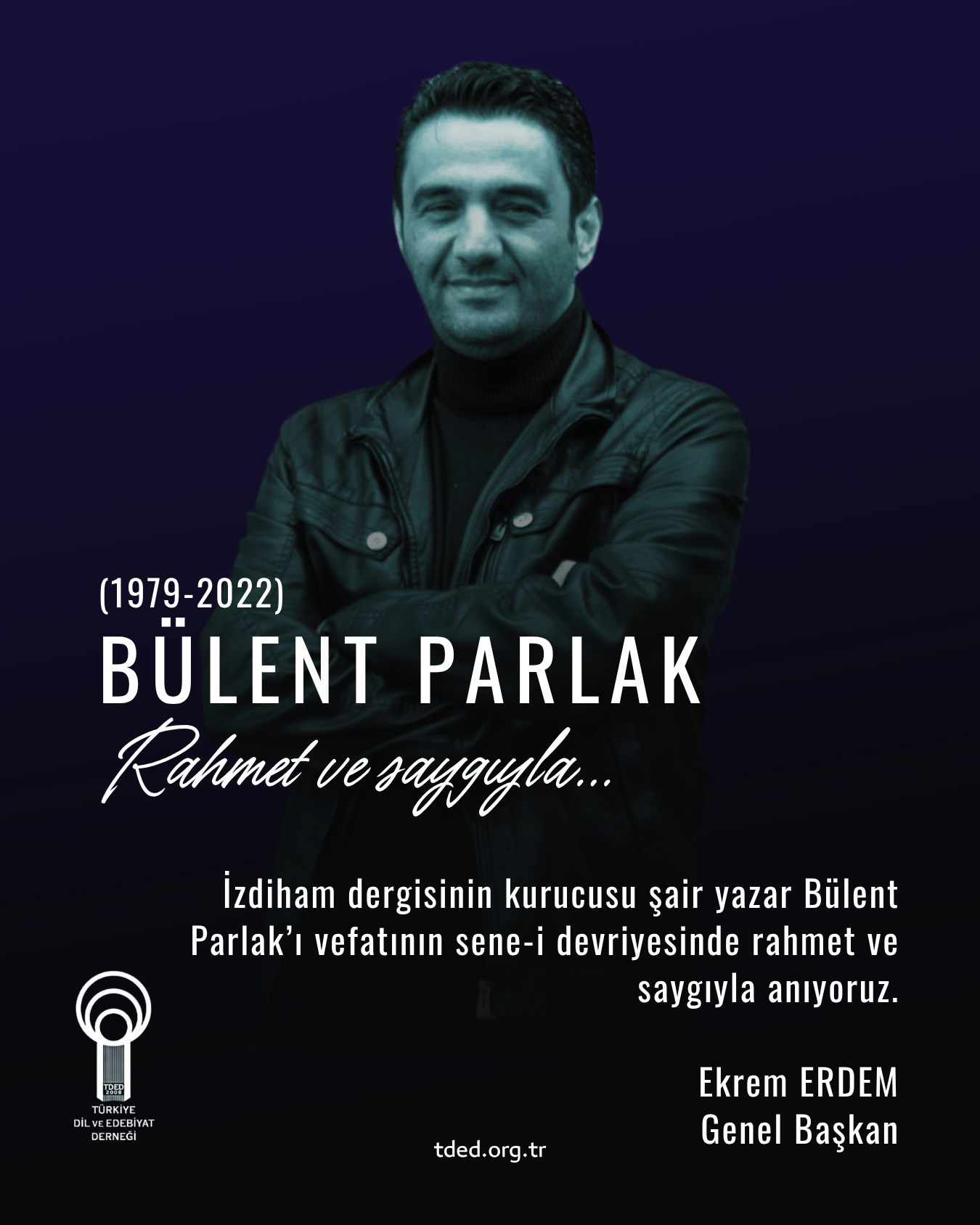 19/04/2026İzdiham dergisinin kurucusu şair yazar Bülent Parlak’ı vefatının sene-i devriyesinde rahmet ve saygıyla anıyoruz.