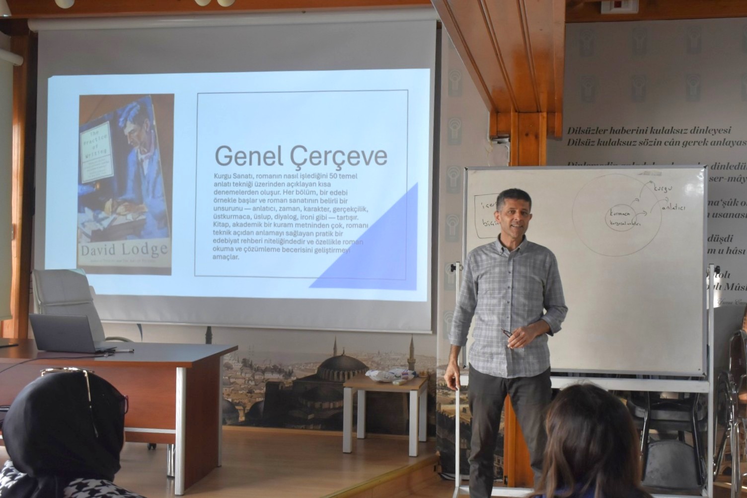 Derneğimizin İstanbul Üniversitesi iş birliğiyle hayata geçirdiği 2025 Dönemi “TDED Yazarlık Mektebi”ni başarıyla tamamlayan katılımcılar için Türkiye Dil ve Edebiyat Derneği (TDED) tarafından düzenlenen 2. Kademe Yazarlık Mektebi'nin 2. Grup eğitimlerinin ilk dersi gerçekleşti. Yönetim Kurulu Üyeleri Doç. Dr. Aytaç Ören “kurmaca sanatı” konusunu anlattı ve David Lodge’un “Kurgu Sanatı” kitabını tahlil etti.