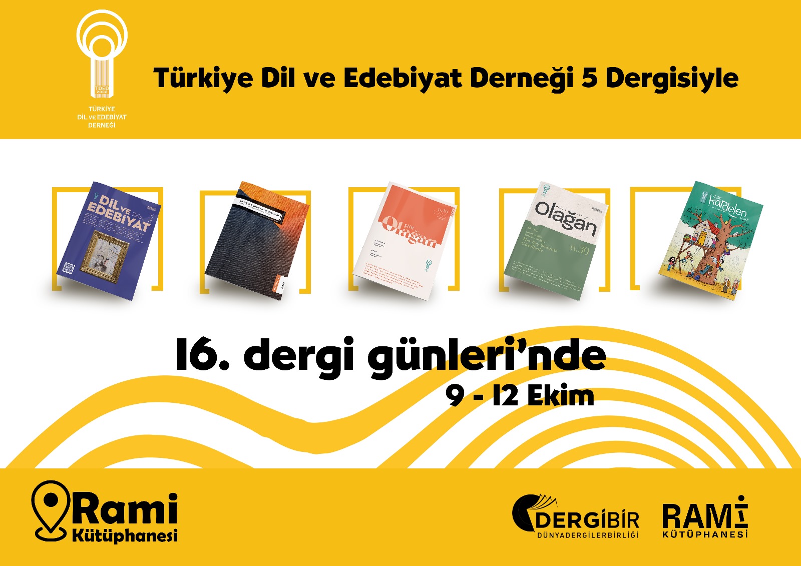 Türkiye Dil ve Edebiyat Derneği (TDED), Dil ve Edebiyat, Dil ve Edebiyat Araştırmaları (Hakemli), Olağan Şiir, Olağan Hikâye, Kardelen Çocuk dergileriyle bu yıl Rami Kütüphanesi’nde düzenlenen 16. Dergi Günleri'nde okurla buluşacak. Derneğin muhtelif kitap yayınları da dergilere eşlik edecek.