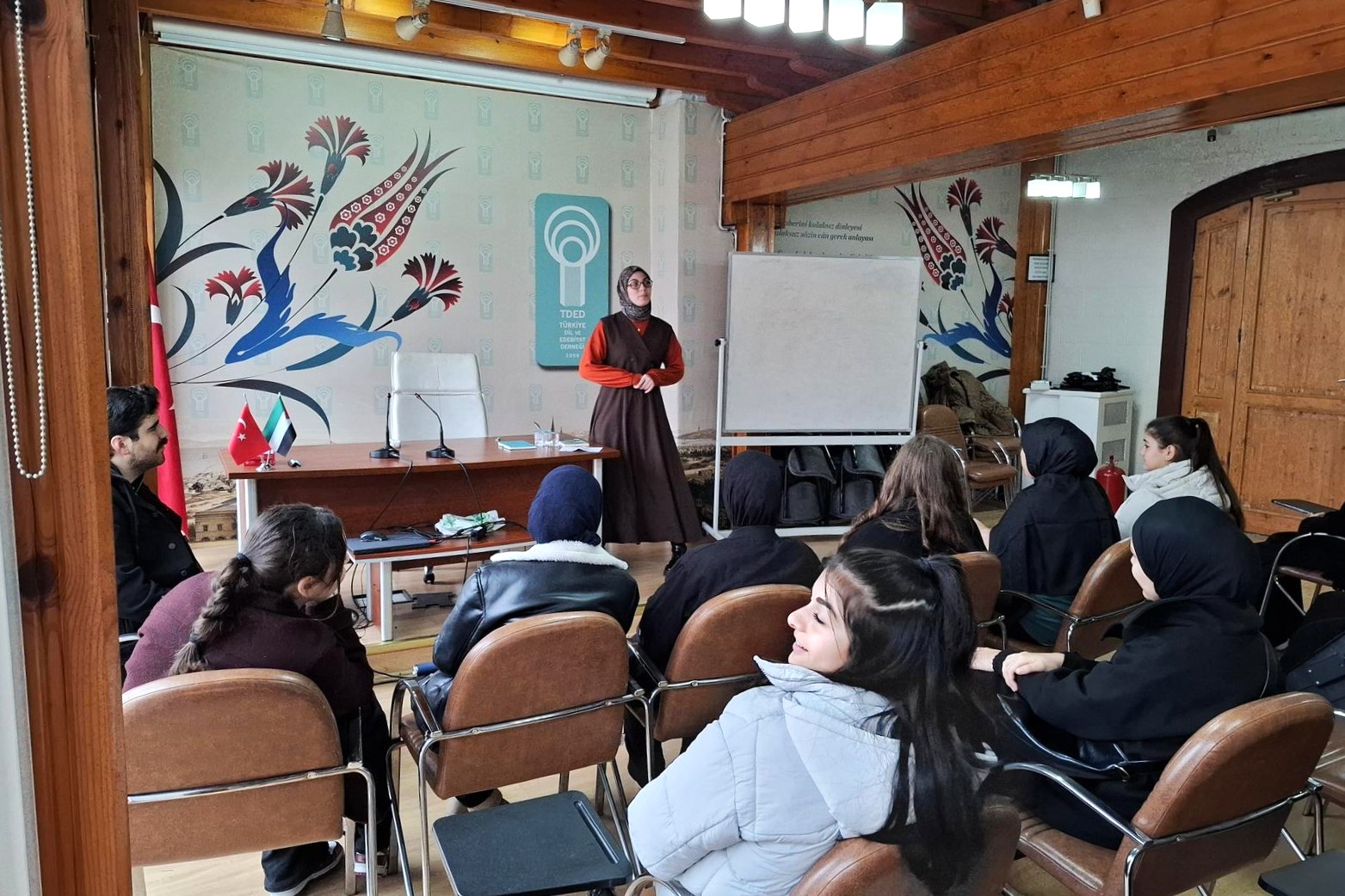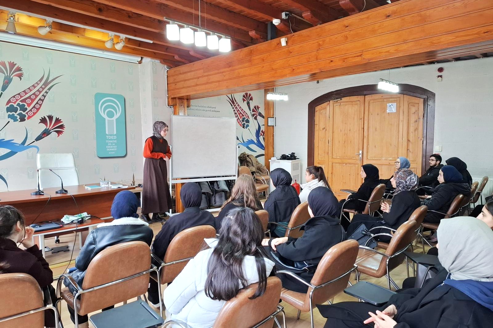 İçişleri Bakanlığı desteğiyle yürütülen “Dilimiz Kimliğimizdir Projesi” ve “Medeniyet Okumaları Projesi” kapsamında, TDED Proje Koordinatörü Emine Bayburt öncülüğünde, Mimar Sinan İmam Hatip Ortaokulu 8. sınıf öğrencileri ile Türkiye Dil ve Edebiyat Derneği Genel Merkez’inde özel bir program gerçekleştirildi. Dilin yalnızca bir iletişim aracı değil; kültürün, hafızanın ve kimliğin taşıyıcısı olduğu bilinciyle hazırlanan etkinlik, öğrenciler için zihin açıcı bir öğrenme deneyimine dönüştü. Programın yazar buluşmasında çocuk edebiyatı yazarı Ayşegül Çakır söyleşi yaparken, “Kelimelerin Gücü” seminerinde Uzman Psikolog Senem Ağbulut eğitim verdi.