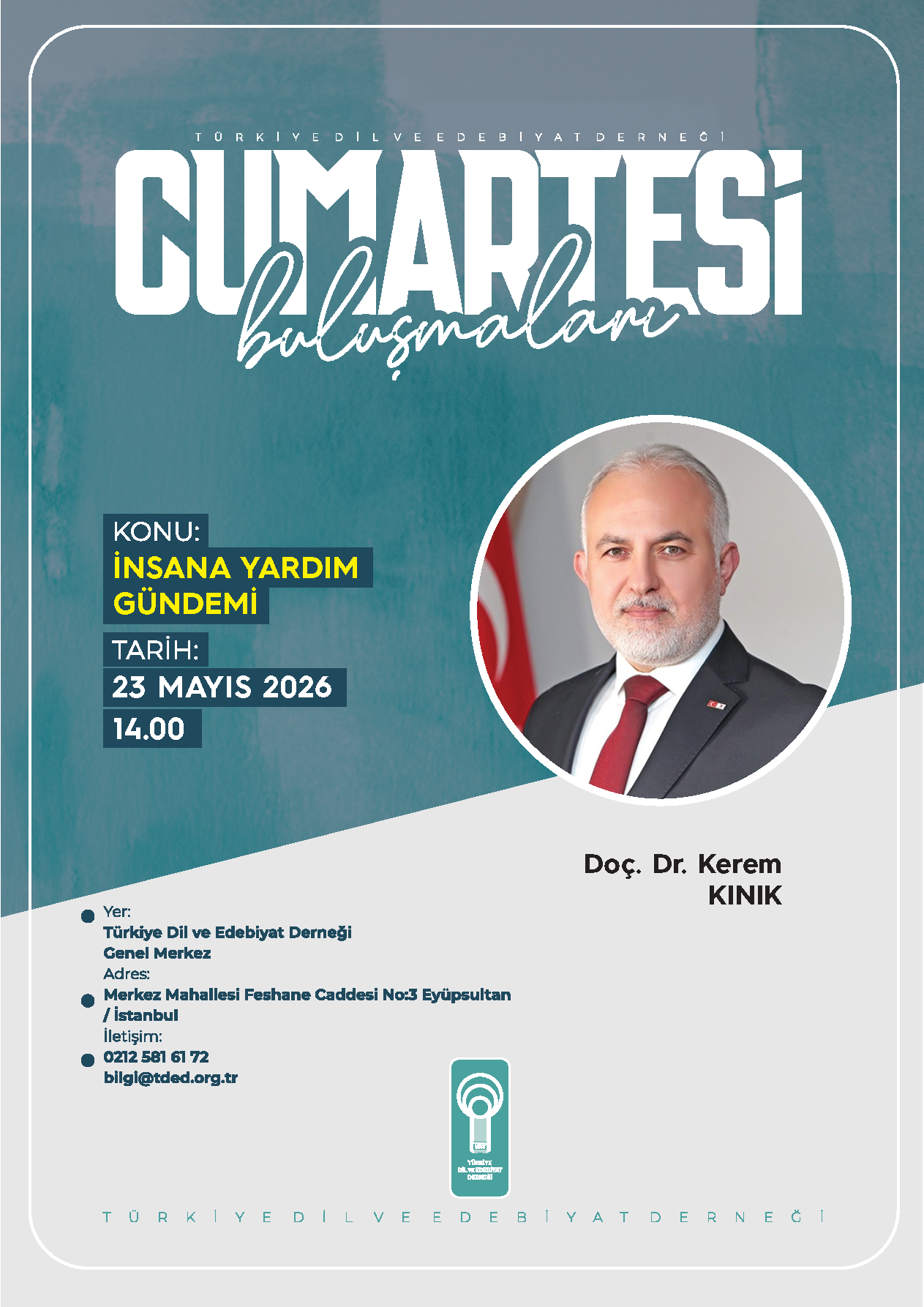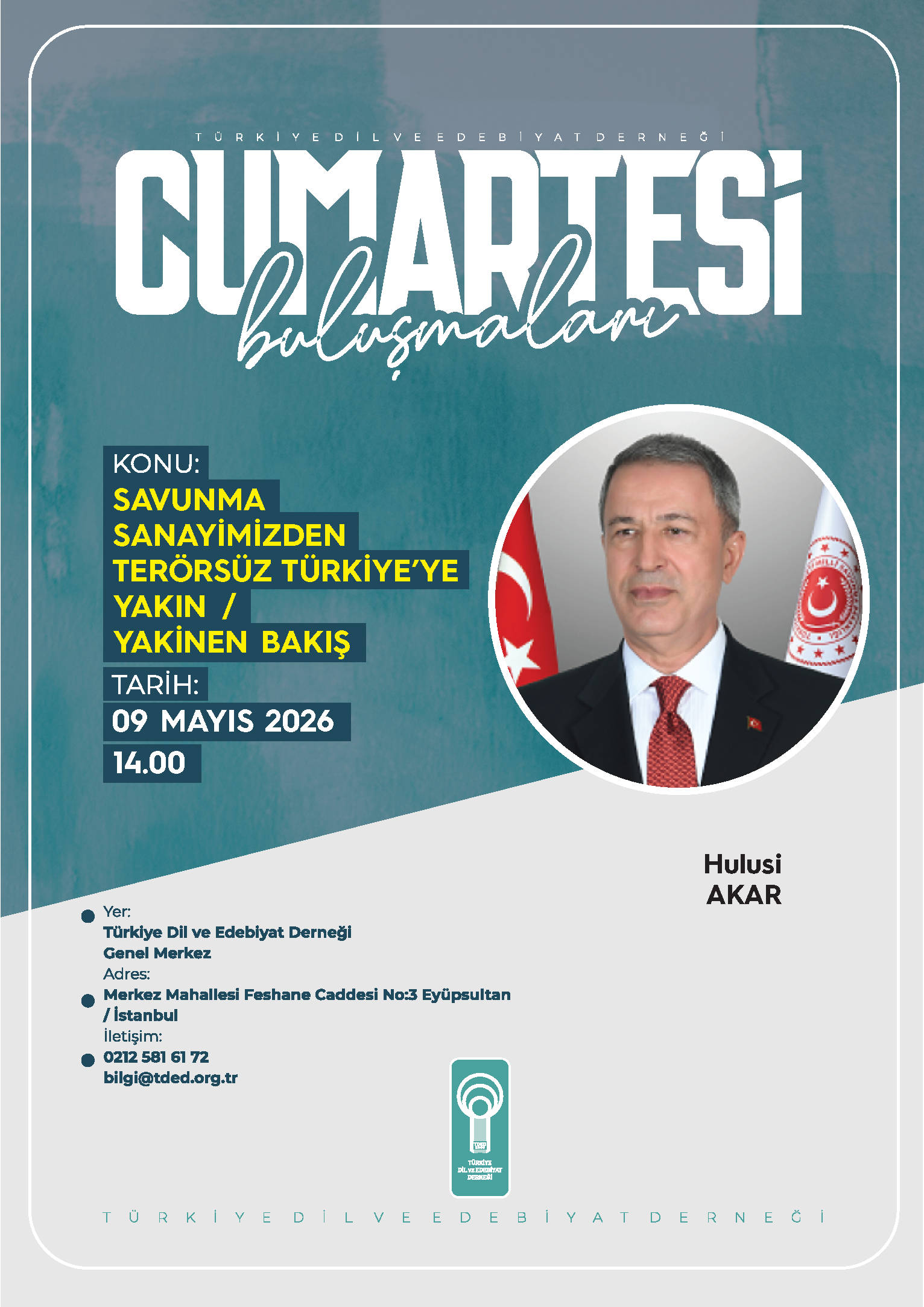 Türkiye Dil ve Edebiyat Derneğinin (TDED) haftalık söyleşi programı “Cumartesi Buluşmaları” Mayıs programı önemli konu ve konuklarıyla gündemin nabzını tutacak.