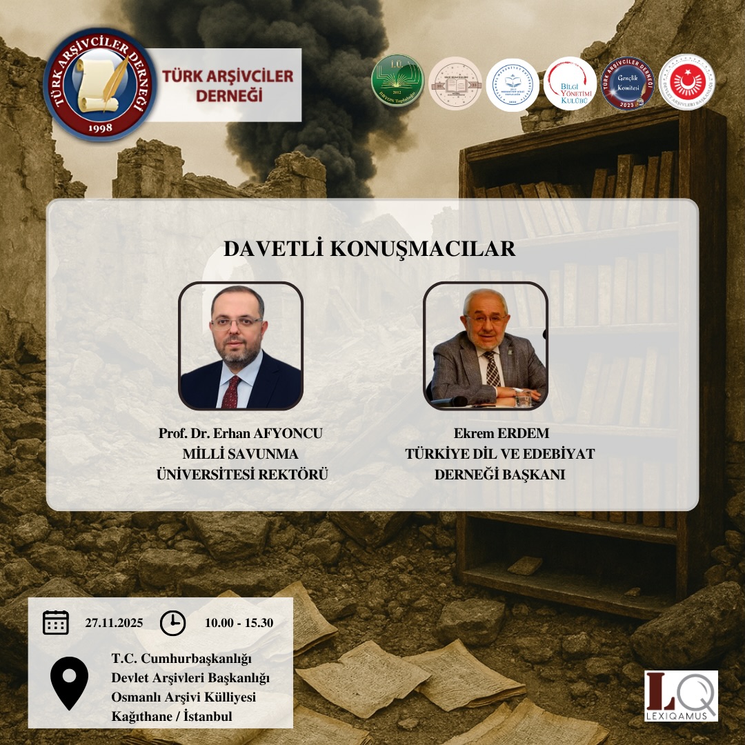 Türk Arşivciler Derneği, Hazine-i Evrak’ın 179. kuruluş yıl dönümü ve 20. Arşivcilik Günü kapsamında düzenlenen “Savaşta ve Barışta Arşivler” temalı etkinlikte, Türkiye Dil ve Edebiyat Derneği Genel Başkanı Ekrem Erdem davetli konuşmacı olarak yer alacak.