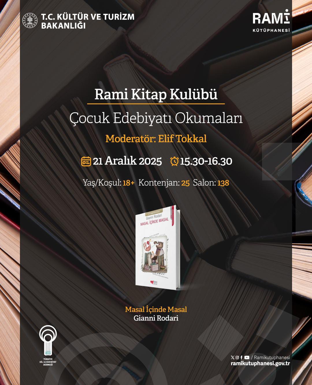 Kültür ve Turizm Bakanlığı, Rami Kütüphanesi ve Türkiye Dil ve Edebiyat Derneği iş birliği ile düzenlenen “Rami Kitap Kulübü: Çocuk Edebiyatı Okumaları” etkinlikleri devam ediyor.