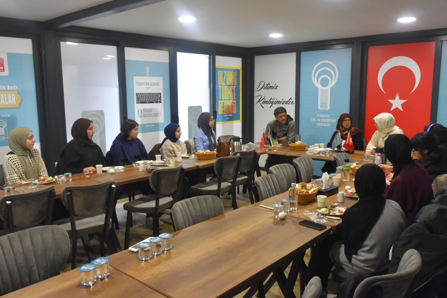Ümraniye Şehit Erol Olçok Kız Anadolu İmam Hatip Lisesinin “Medeniyet Okumaları” okuma ve çalışma grubu öğrencileri, rehber öğretmenleri Şehri Kılıç ve Şeyma Öztürk ile kültürel gezi kapsamında dernek genel merkezini ziyaret etti. Yönetim Kurulu Üyesi Doç. Dr. Aytaç Ören’in kendilerine, günümüz problemleri ve gelecek tasavvuru merkezli bir sohbet gerçekleştirdiği öğrenciler, ziyarelerini Eyüpsultan’da gerçekleştirdikleri kültür gezisiyle tamamladılar.