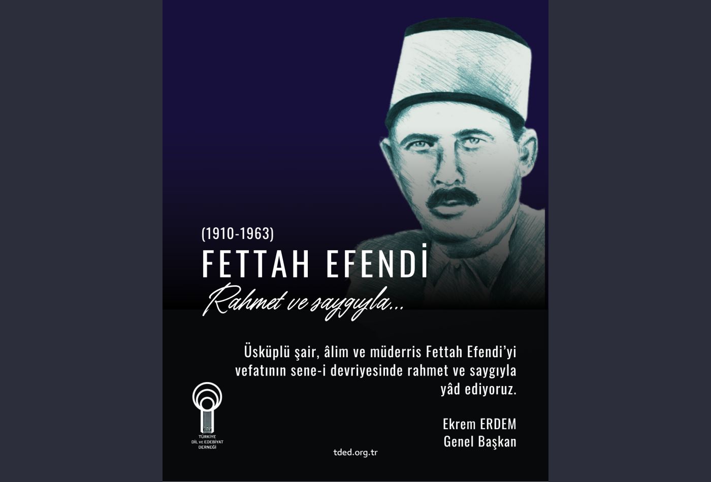 Üsküplü şair, âlim ve müderris Fettah Efendi’yi vefatının 58’inci yılında rahmet ve saygıyla yâd ediyoruz.